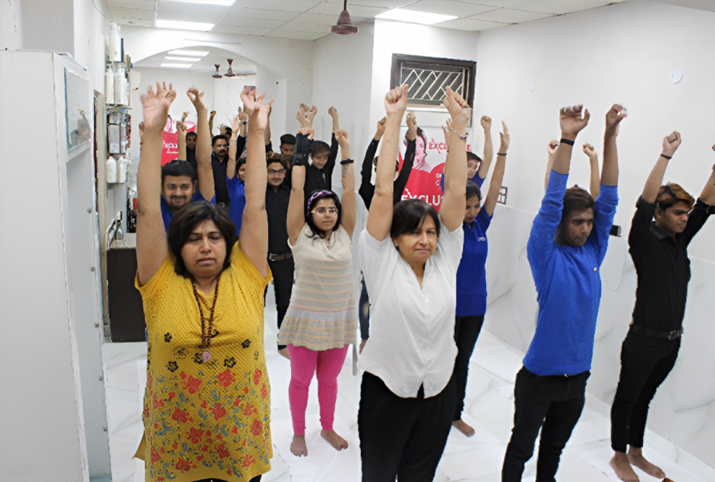 Yoga Campaign: Promoted health awareness among beauty professionals through yoga exercises.
